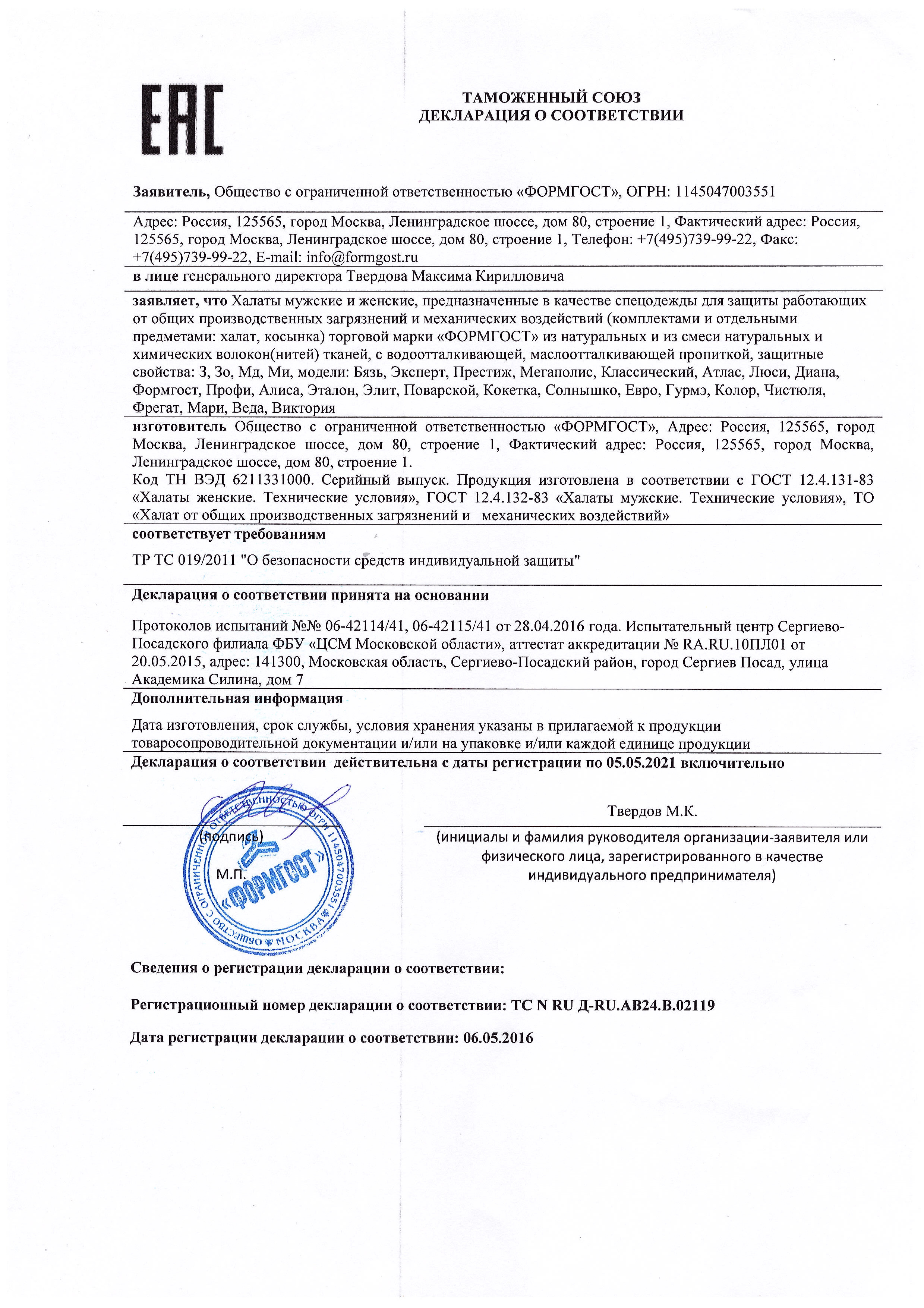 Состав ткани | 50% х/б, 50% ПЭ, 60% х/б, 40% ПЭ |