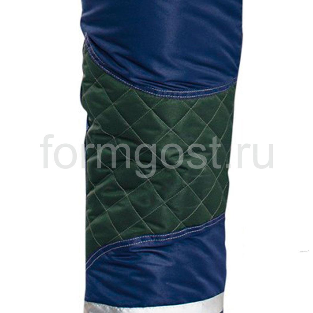 Брюки имеют эргономичную конструкцию, выполнены с учетом анатомических особенностей фигуры рабочего. Два передних боковых кармана с косым входом, сзади накладной карман. Для удобства посадки брюк по фигуре в области талии на спинке проложена эластичная тесьма. В области колен расположены накладки в виде наколенников. Бретели выполнены из специальной эластичной помочной тесьмы для эргономичности. Также бретели регулируются по длине с помощью пряжек. По низу брюк размещена световозвращающая полоса шириной 25мм.