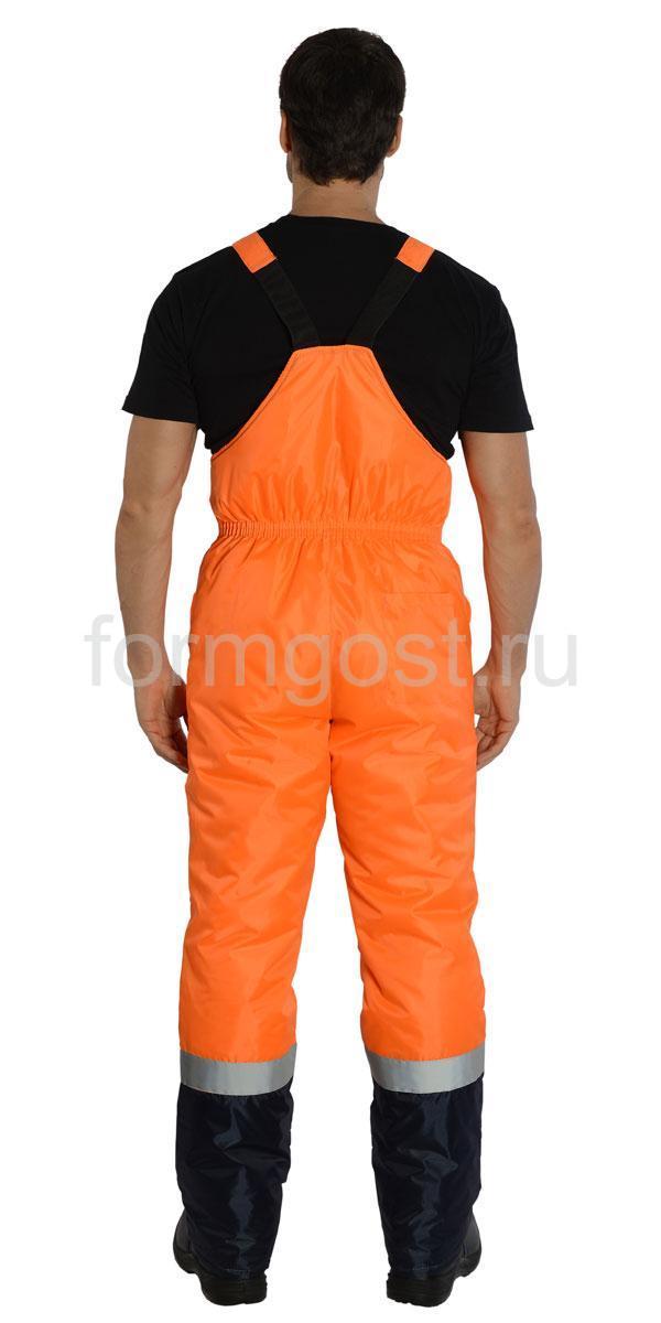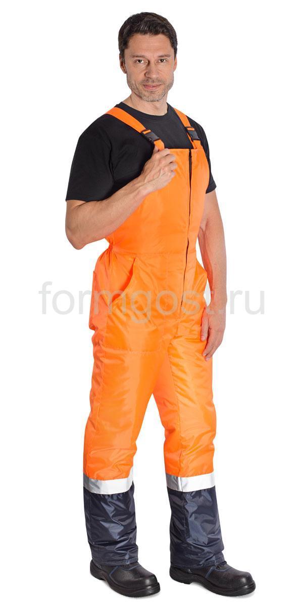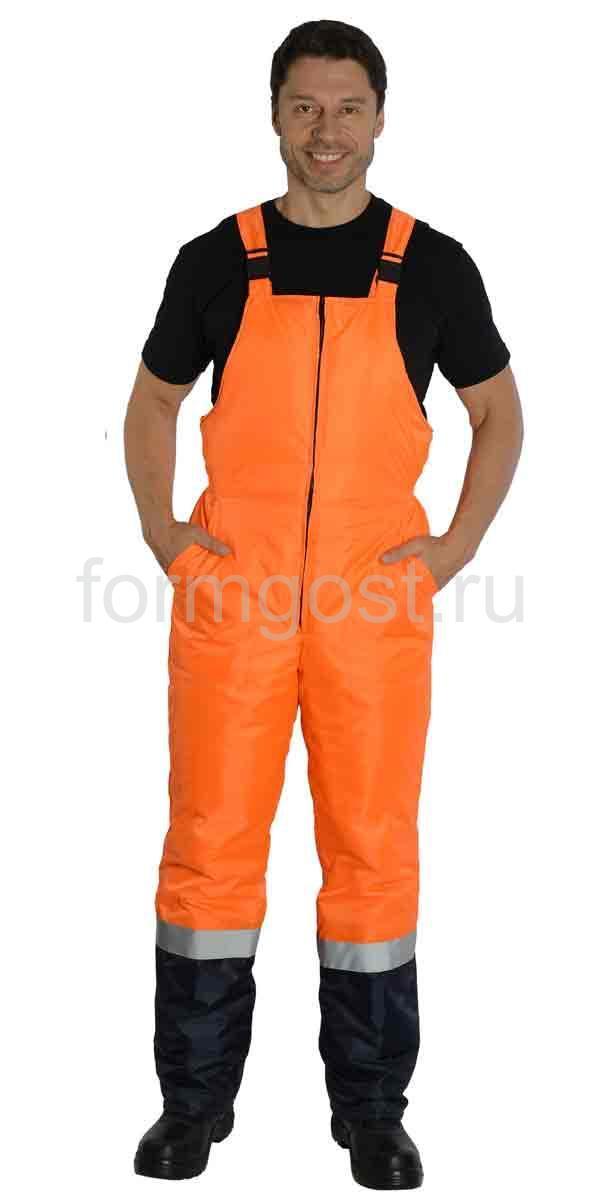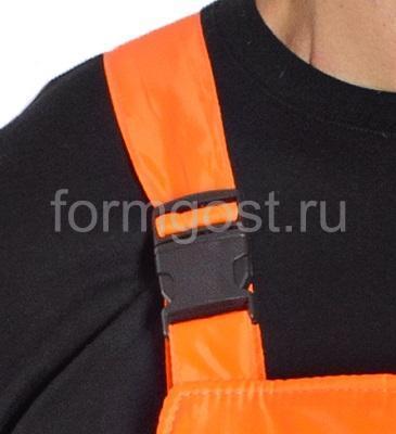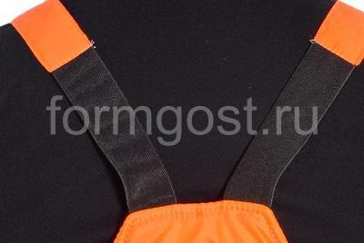 По низу полукомбинезона проложены две широкие световозвращающие полосы шириной 50 мм. с высоким коэффициентом отражения.